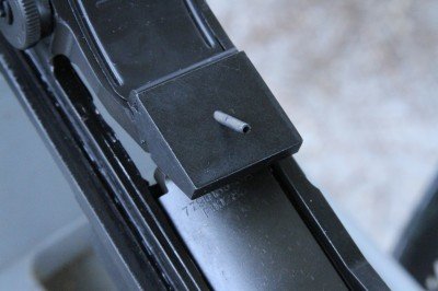 This is the dovetail that holes the stripper clip guide on the M1A. As you can see, I am pushing the lock pin out with a 3/32 punch.