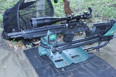 As a real battle rifle, you wouldn’t think that the M1A is capable of good accuracy, but it is not uncommon to find match guns that come in under 1 MOA, or “Minute of Angle.” That means that in the absence of human error, the rifle is capable of keeping shots into about a 1″ circle at 100 yards. I shot my test National Match gun into just under 1.5 MOA with Hornady 168 grain factory ammo. To get into the 1 MOA range you generally will need custom hand loads in these guns, and there are plenty of “pet loads” out there in discussion forums to start with if you want to compete in the M1A tournaments, which are generally out to 600 yards off hand (ouch). I shot these groups from a Caldwell Lead Sled, as you can see in the pictures.