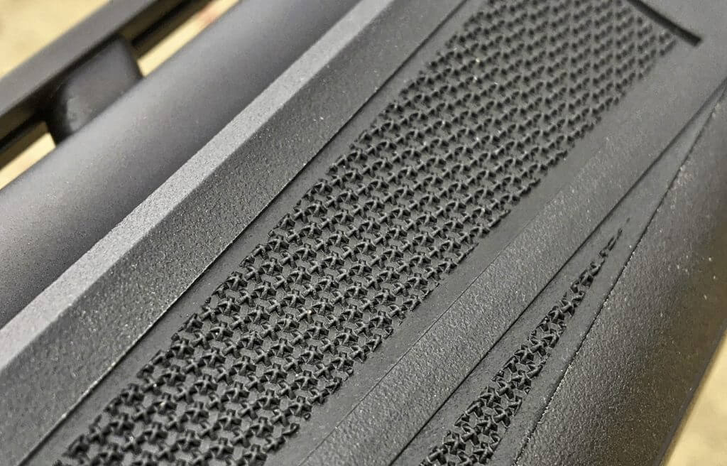 The redesigned gas system is now covered by a new slimmer, trimmer handguard that fits the hand well. The polymer handguard now sports a patent-pending Mossberg texture pattern that isn’t overly aggressive but provides just the right level of grip on the shotgun.