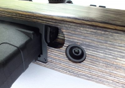 The magazine release is recessed into the stock and worked surprisingly well. Magazine fit was snug and felt precise. Notice the hollow-head guard screws.