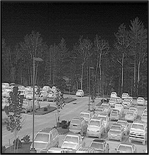A parking lot with thermal vision - Ruggedness: Hand held Mil-spec thermal cameras are generally built to be waterproof to 66′, to withstand extreme changes in temperature and even multiple drops from 4′ onto concrete. Weapon-mountable, Mil-spec thermal sights are designed to stand up to weapon recoil as well.