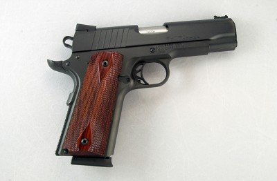 The fit and finish on this gun is excellent, including the slide to frame fit. The Cocobolo hardwood grips are in the traditional double diamond format with checkering that provides a good grip without being too sharp. The flat mainspring housing (backstrap) has good checkering as well. The front strap is smooth. I prefer checkering on the front strap,