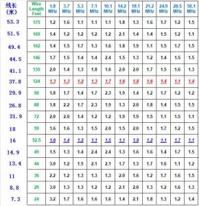 For 40 meters you can see the different SWR ratios for the different lengths. A 1:1 is the goal. A wire of 52.5 feet is good for this balun, but it can’t handle high wattage if you add a linear amplifier.