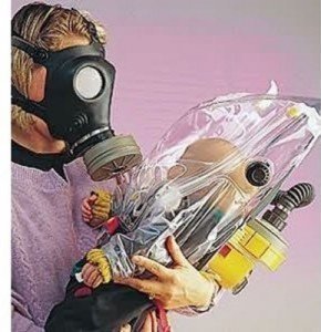 After Chernobyl, thousands of people were evacuated from the surrounding areas in Ukraine wearing GP-5 gas masks, and the kids had on the PDF masks. For short periods of time even small kids can breath through a gas mask filter, but as the filter fills up with particulate the breathing gets harder, until you have to eventually replace the filter. The old and infirmed may be in the same boat for a variety of reasons. And infants of course can’t wear a gas mask. I remember back in back when I first researched gas masks that there were “baby chambers” on Ebay from Russia, but I don’t see them anymore. The only option seems to be a positive pressure fan system from Israel right now, and they also make a complete toddler hood, as well as infant chamber.