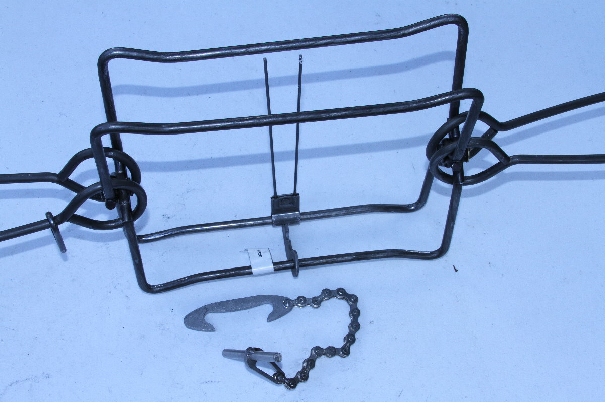Why is trapping sensitive for most folks outside of flyover country? Mostly because of the danger of catching something you don’t want to catch in the trap. Then there is the pain factor. When we thing of steel traps especially, we think of leg traps. And yes, the thought of a coyote or possum waiting for you to come and kill it, with its broken leg in a trap, is not very pleasant. So that is why I decided to first explain the “killer trap.” This is an animal trap, not a man trap, and it comes in several sizes, depending on which animal you intend to trap. Also known as the Conibear trap, named after its inventor Frank Conibear in the 1950s, trappers call this trap a “killer trap” because it is designed to snap the neck of the animal. The big 330 size traps go for about $25 each on Ebay, and the smaller ones are about half that.