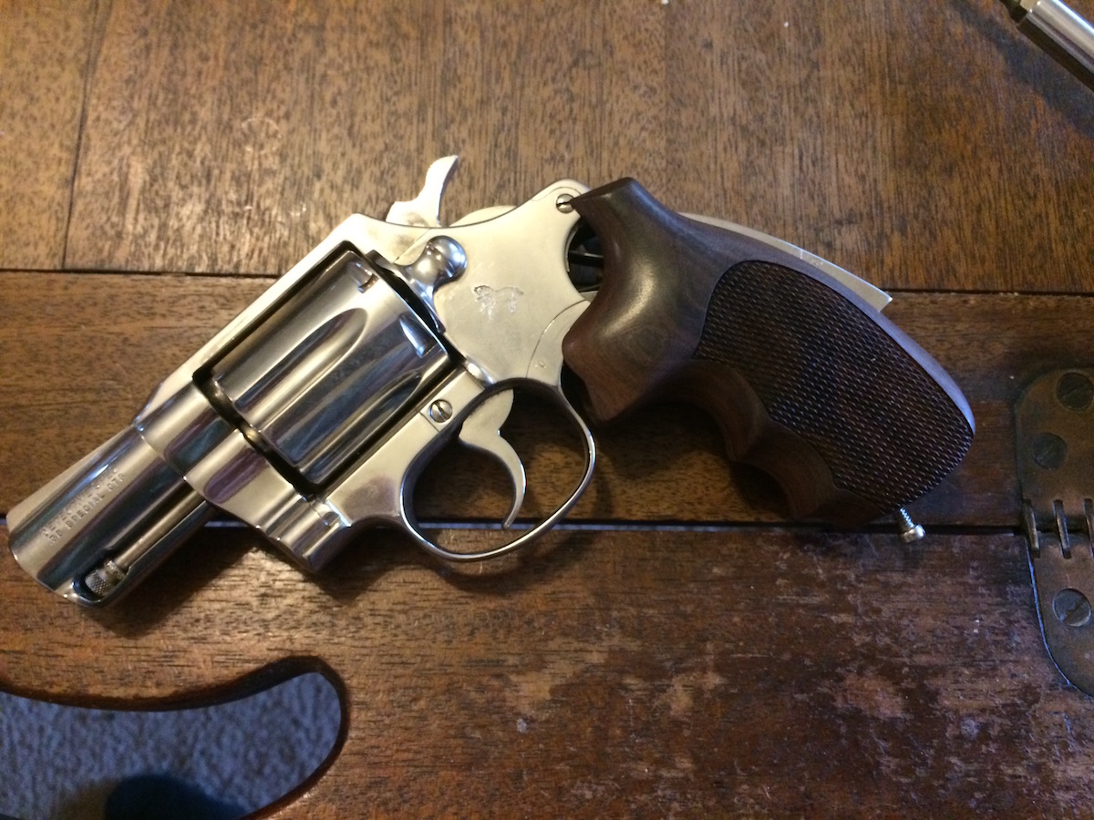 When I recently purchased my Colt Detective Special, one of the first things I knew I had to do with it, aside from taking it out to the range to break it in some, was to change out the cheap-looking, faux stag grips that someone had put on it. Not only are they ugly, but they made the gun uncomfortable to shoot. It was like someone had put old mud tires on a Ferrari. The crappy grips marred both the performance and aesthetics of this fine-looking firearm.