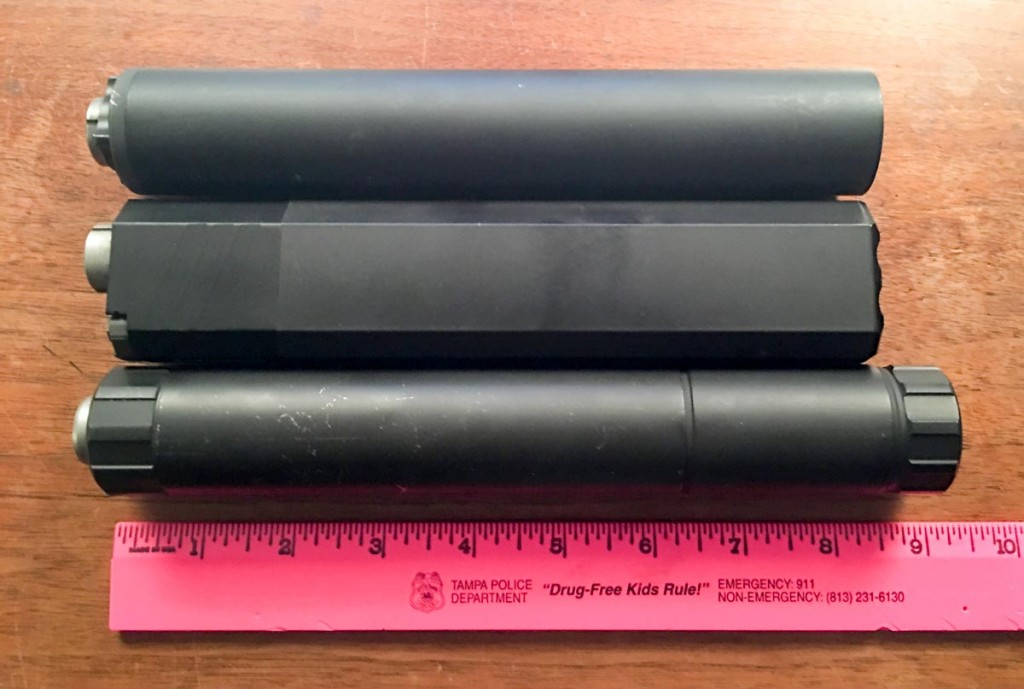 Another size comparison: SilencerCo / SWR Octane 45 (top), SilencerCo Osprey 45 (center) and AAC Ti-Rant 45M (bottom)