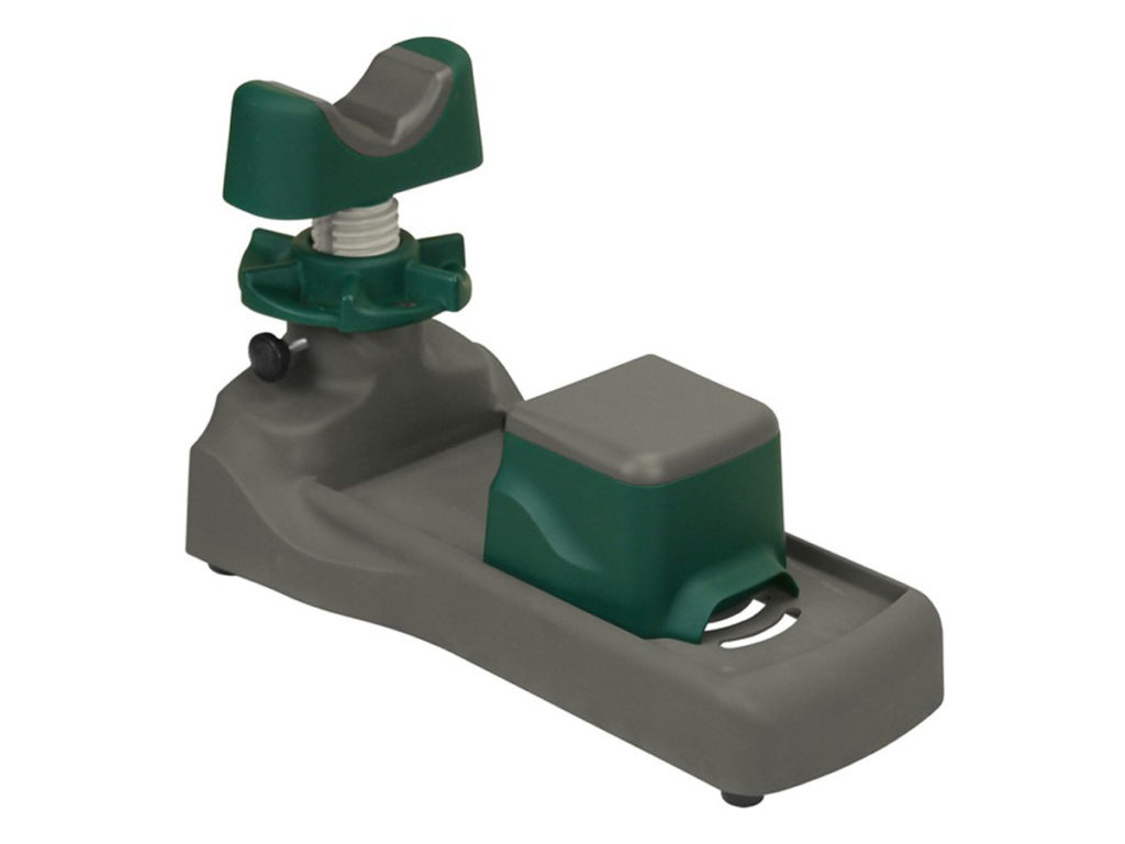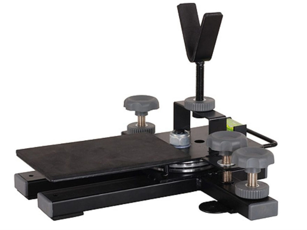 Handguns require different support than rifles. Adjustable shooting rests such as the Caldwell Pistolero or the HySkore Pivoting Pistol Shooting Rest are good options for the average shooter. The former is lighter-weight and sometimes requires weight for stability while the latter has anchor points so it can be firmly mounted to the bench. Take care to monitor where the muzzle of your gun is resting so you don’t accidentally shoot the edge of the rest.