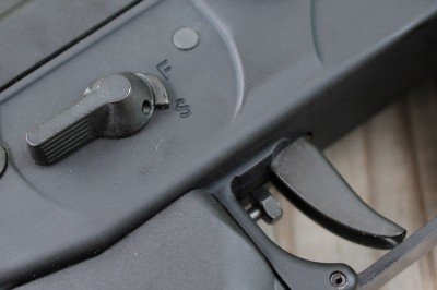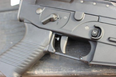 The lower is anodized aluminum. The safety is ambidextrous. I’m not used to how the lever falls on the right side of the receiver. Even now, after working with this gun off and on for more than a month, I hit the first knuckle of my right hand when I drop the safety with my thumb. If it were my gun, I’d simply remove the lever from the right side of the receiver and call it a day.