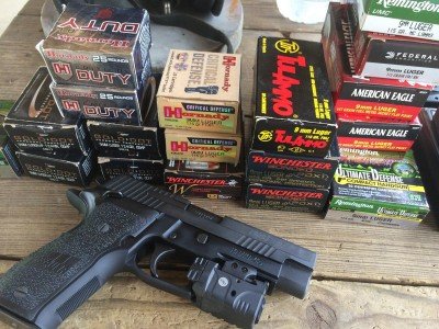 Prior to the match, I ran a variety of 9mm ammo, both practice and premium defensive, through the gun to check velocity performance and it’s ease of shooting accurately. For function testing, I shot at least a dozen types of 9mm ranging from inexpensive practice ammo to high-end premium self-defense ammunition. I used steel cased, brass cased, light bullet, heavy bullet, lead, hollow point, flat point, round nose – you name it. When the Sig P226 ate all that without a hiccup, I dumped a pile of each ammo type on the shooting bench, mixed up the cartridges, and started loading mixed magazines. For example, a Hornady Critical Duty 135 grain cartridge might be followed by a Tula 115 grain steel case practice round, and so on. No matter, I’m still waiting on my first malfunction with this gun.