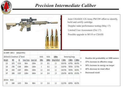 The USSOCOM narrowed their selection down to 6.5mm Creedmoor and .260 Remington. They choose 6.5mm Creedmoor because it is more flexible in terms of projectile type and load variation.