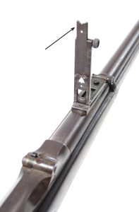 The U.S. Model 1884 Springfield Rifle Rear Sight. The sight ladder is calibrated from 100 to 1,800 yards while the notch at the very top of the sight ladder is calibrated for 2,400 yards or 1.3 miles.