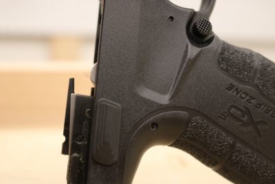 Also on the safety front, the backstrap safety from the XD-S family is gone. I like this because I have actually not engaged it on my XD-S, and that is no bueno. For the XD-E, applying the safety actually disengages the trigger completely. You will know immediately if the safety is up, the trigger feels like it is 10 ounces when you press it. Unlike a 1911 however, you can still manipulate the slide with the safety on. This is great, especially for new concealed carriers. First, you can fully load or unload the gun without ever taking the safety off. Actually, you can even disassemble the gun without taking the safety off. We have all seen the new guy, that is afraid his gun is going to go off when the slide goes forward to load. And we were all that new guy one time, even if we were a child. This feature can go a long ways toward making people less afraid of the gun, and that also puts people in our camp.