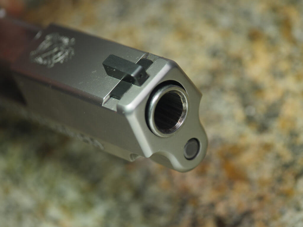 The build quality on the 911 is good. The fit of all pins and buttons is tight and refined. The matte anodized finish on the frame is flawless and uniform. The G10 is all well done. Unlike a 1911 with a barrel bushing, the hole in the front of the slide for the barrel doesn’t fit tightly nor concentrically around the barrel.