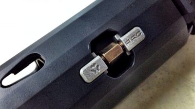 This turnbuckle screw fixes the handguard to the barrel nut. Anti-rotation tabs prevent the handguard from twisting off. The system unlocks easily for handguard removal. (Photo: AAC)