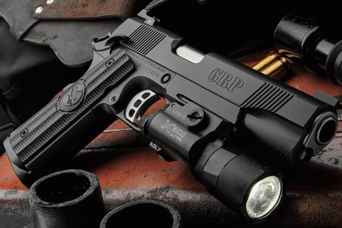 The Nighthawk GRP Recon is designed to provide shooters with a tactical-grade 1911 capable of accepting weaponlights such as this Surefire X300 Ultra. The .45 ACP pistol shown equipped with a match-grade threaded barrel topped off with a GEMTECH GM-45 suppressor.