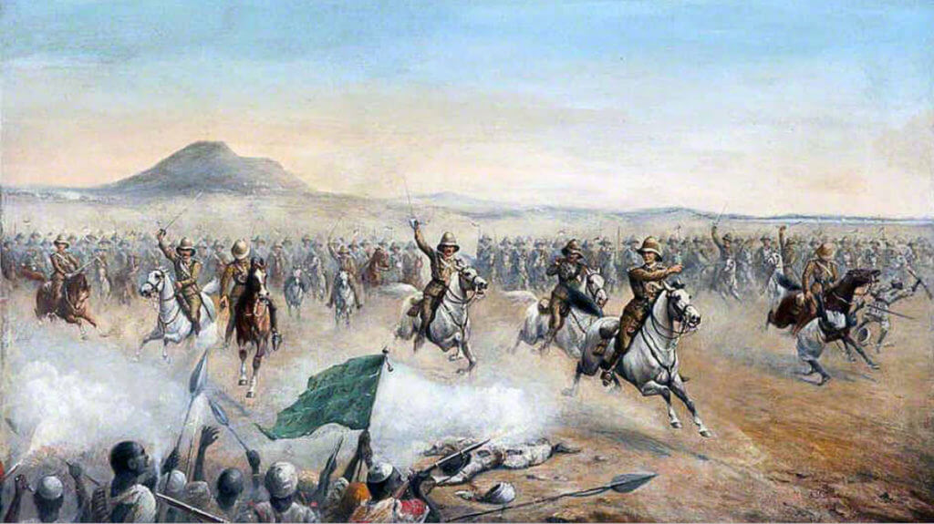 The British enjoyed the advantage in artillery, modern rifles, and machineguns but were still nonetheless outnumbered two-to-one. In the resulting melee the 21st Lancers, a British light cavalry regiment, advanced to clear the field. This was the last horse cavalry charge executed by the British Army.