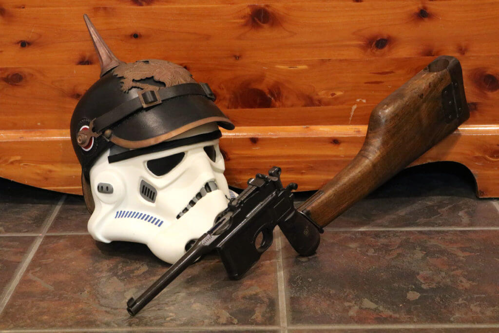 Want a C96 Broomhandle of your own? GunsAmerica.com typically has several listed. Special thanks to www.worldwarsupply.com for the pickelhaube used in our photographs.