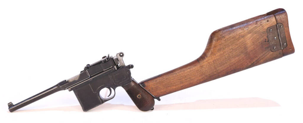 The 7.63x25mm C96 never was a general issue weapon in the Kaiser’s army. Stocked handguns like the P08 Artillery Luger were widely issued, but the C96 in its original chambering remained a private purchase weapon. The Imperial German Army contracted for 150,000 C96’s chambered in 9mm Parabellum for use during WW1. Some 137,000 were delivered prior to the armistice.