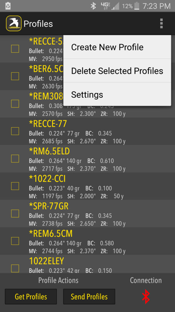 The Kestrel Ballistics app allows for the easy creation, upload, and download of gun profiles between your phone and Kestrel via the Bluetooth connection. The Elite 5700 can store up to 30 distinct gun profiles for anything from rimfire cartridges to magnum centerfires. I do recommend that you back up your gun profiles to the app though just incase something should happen to the Kestrel.